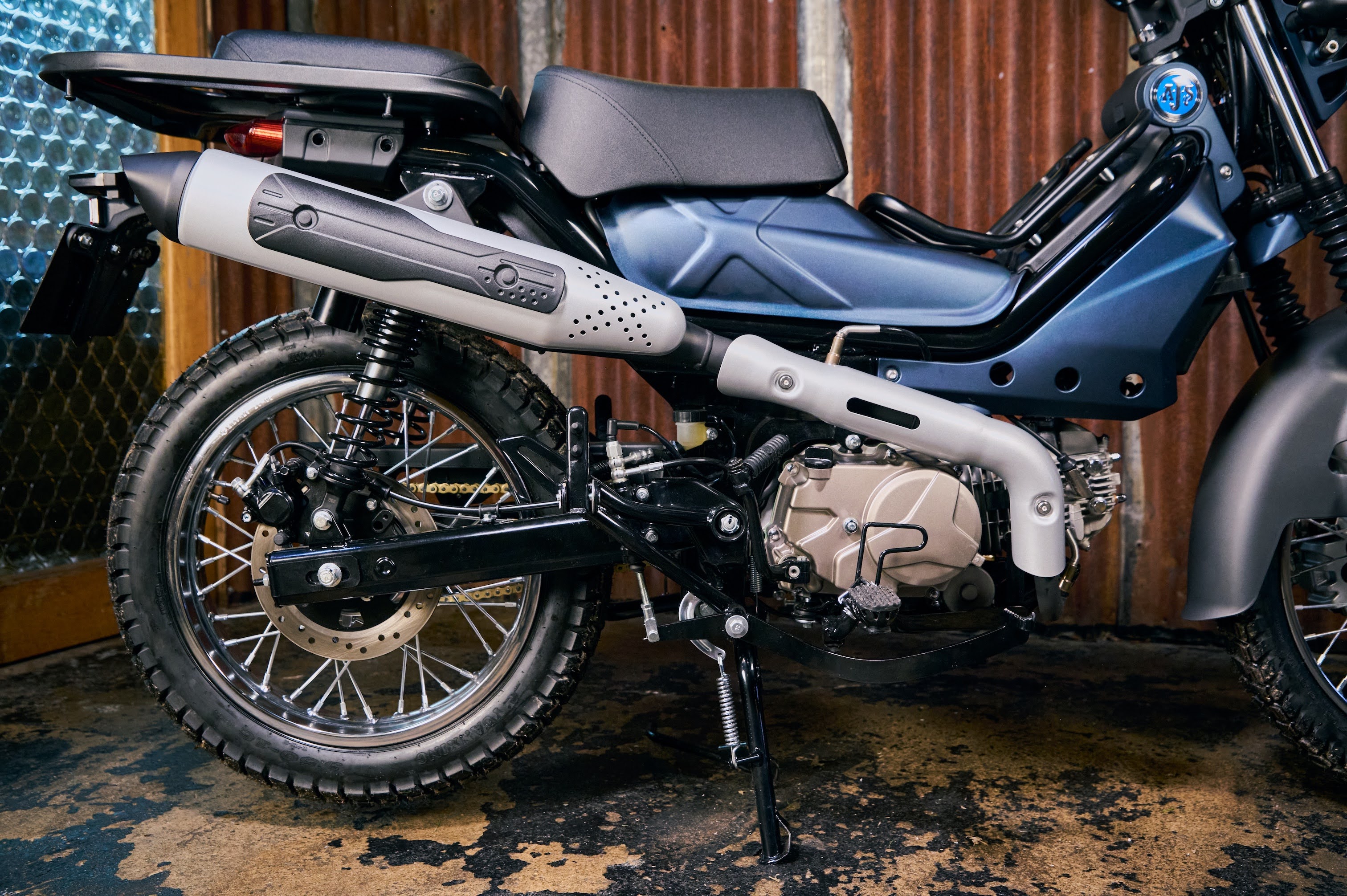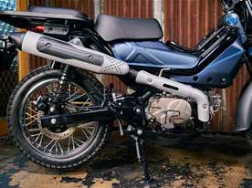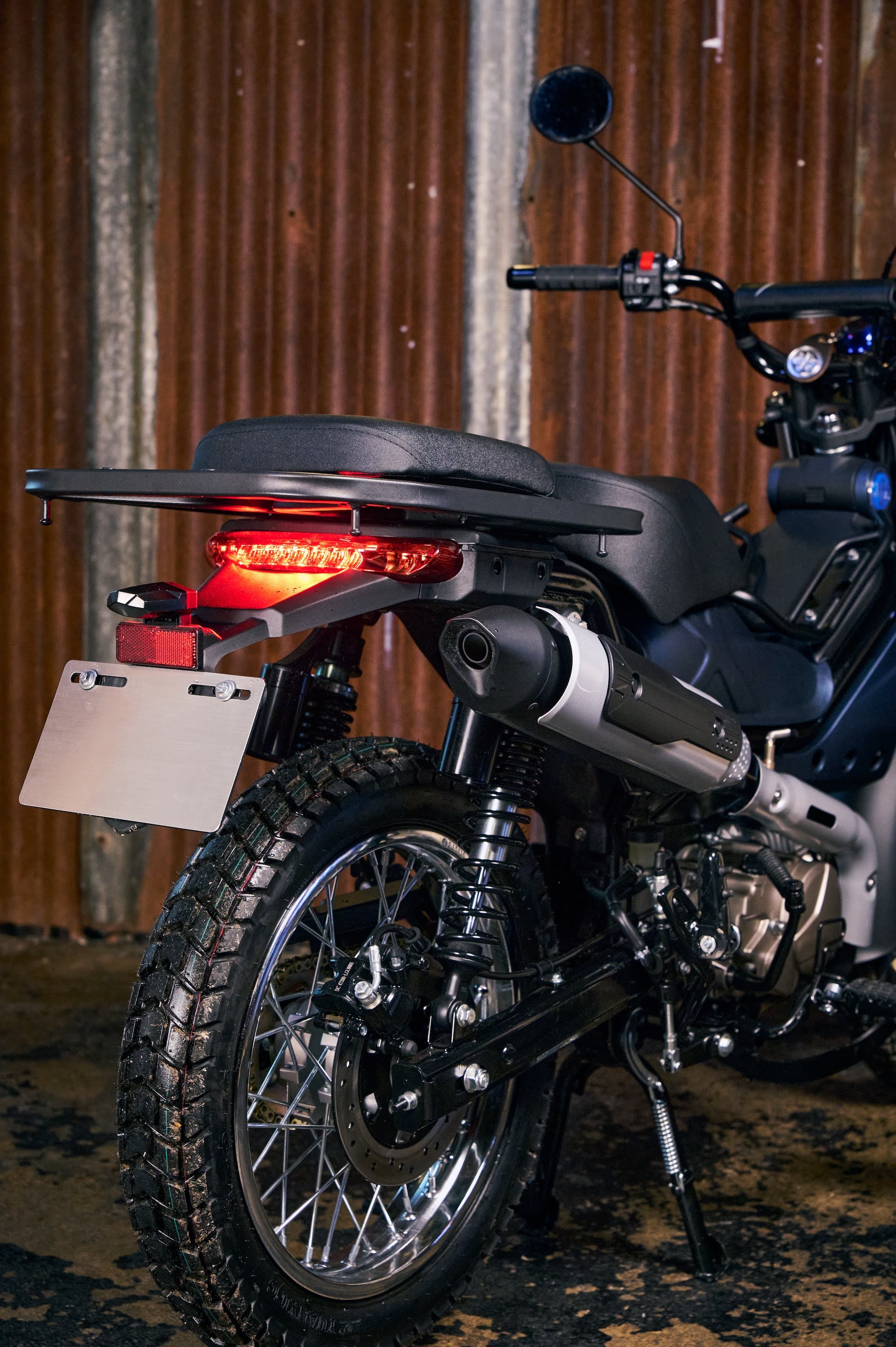 Engine: The 125cc air-cooled SOHC engine produces 6.1kW of power, plenty enough for urban commuting and light off-road trails. Its 4-speed manual transmission with semi-automatic centrifugal clutch makes for easy handling, while its balance shaft creates a smooth, confident ride.